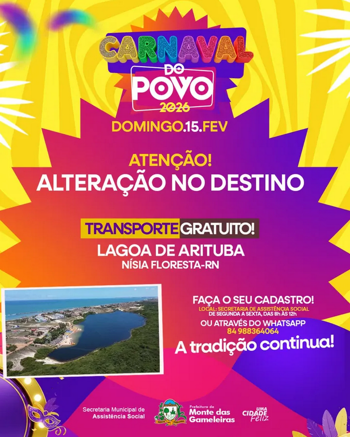 Agora, o destino será para Lagoa de Arituba – Nísia Floresta-RN.