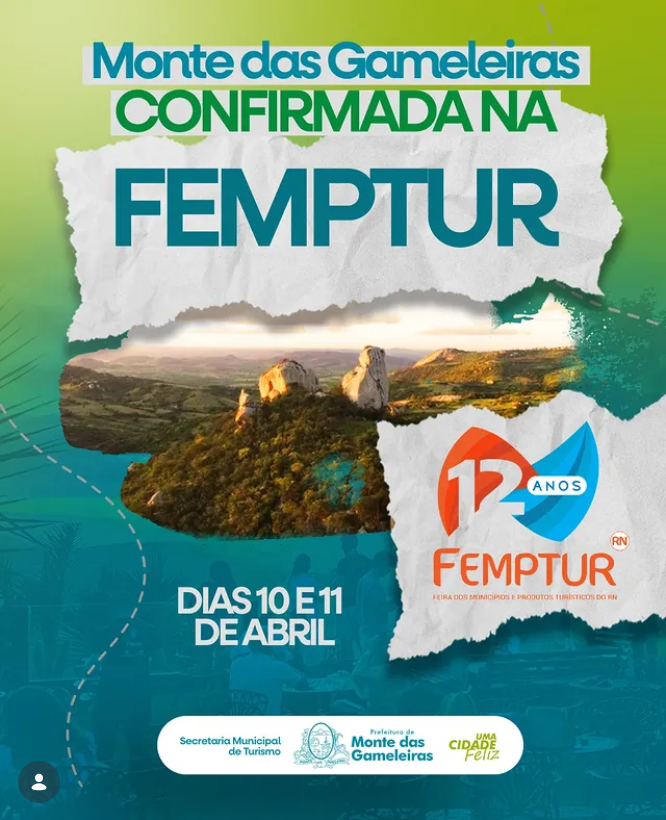 Monte das Gameleiras está confirmada mias uma vez na 12ª Feira dos Municípios e aprovados Turísticos do Rio Grande do Norte, que será realizada nos dias 10 e 11 de abril, no Centro de Convenções em Natal.